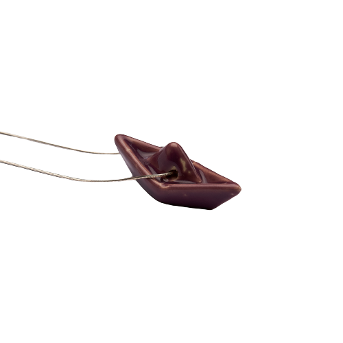 Dije barco de papel hecho en cerámica, verde turquesa. Cadena de Plata de 55 cm.